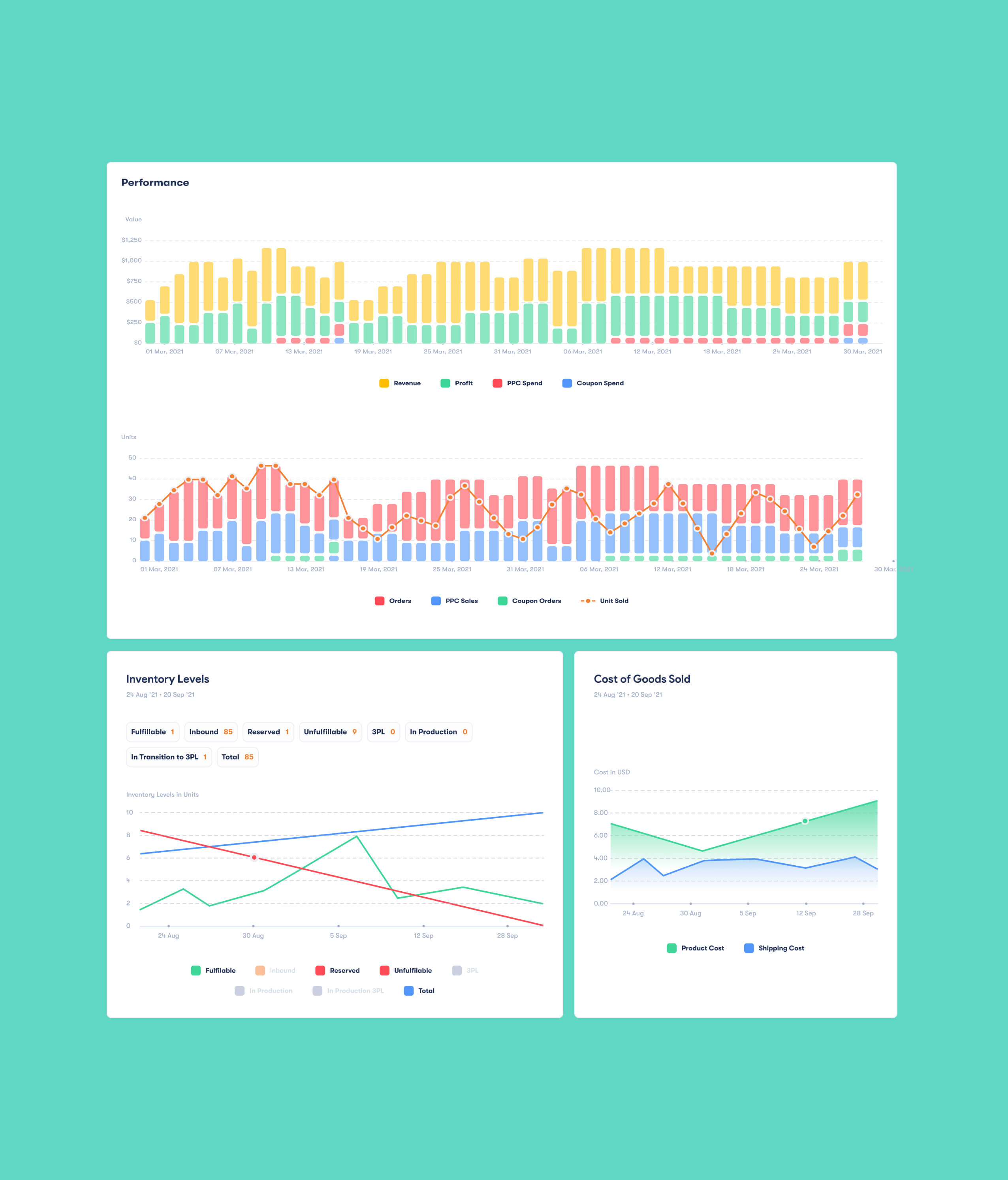 and other sales performance to inventory levels, ad spend, customer reviews, and competitor